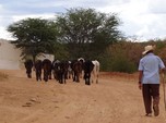 Seu José Morais toca o gado pela estradinha de terra, em busca de água, todos os dias. Luna Markman/G1
