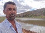 O agricultor Luiz Pereira mostra até onde a água chegava nos últimos anos na barragem Cacimbas.Luna Markman/G1