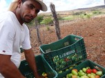 Odair Gomes trabalha na plantação de tomates e disse que eles estão pequenos este ano. 'Não desenvolveram por causa da falta de água, o que também diminuiu a produção', falou.Luna Markman/G1