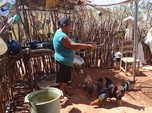 Dona Maria Elza também usa a água da barragem para matar a sede dos animais. Ela fica guardada em tonéis e baldes. Como não serve para irrigação, a agricultora perdeu todo o milho que plantou. Agora, precisa comprar na feira para alimentar as galinhas.Luna Markman/G1