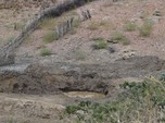 Barreiro está quase um lamaçal na Fazenda Duas Barras, em Santa Cruz. Bodes, ovelhas e porcos bebem nesse local.Luna Markman/G1