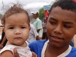 - Menino carrega bebê no colo enquanto a mãe dela está na fila da água, em Jutaí.Luna Markman/G1