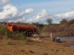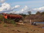 Carros-pipa pegam água na barragem Cacimba das Garças para abastecer povoados distantes da sede de Santa Cruz.Luna Markman/G1