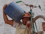 - Homem equilibra bicicleta e tonel cheio de água nos ombros e cabeça, em Jutaí.Luna Markman/G1