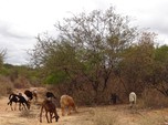 Ovelhas comem resto de mato seco na sede de Santa Cruz.Henrique Zuba/ TV Globo